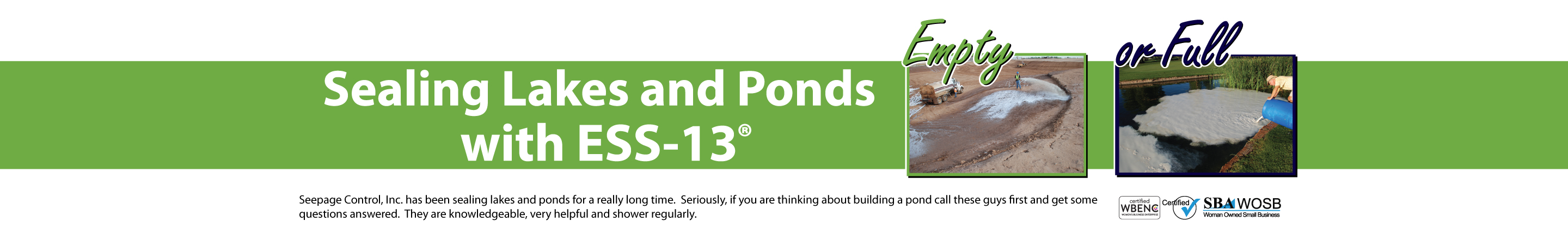 Armed with the answers to these questions and your decision to proceed, feel free to contact Seepage Control, Inc (www.seepagecontrol.com) at 1.800.214.9640, or send us an email at info@seepagecontrol.com.